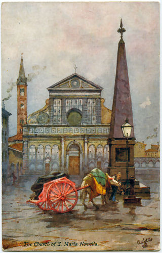 John Ruskin Mornings in Florence It's September 2018, and having begun listening to an Audible recording of Vasari, and started appreciating his strengths rather than his failings, here I am reading Ruskin and finding him to not be so much of a prig as I thought. I'm reading Mornings in Florence, in a handsome paperback bought on my last trip, and I got to the bit where he says of Santa Croce ...the ugliest gothic church you were ever in...no vaultings at all, which I've long quoted on my site's Santa Croce page. But reading on, beyond the famous quote, he goes on to say that though the design is not beautiful by any means it deserves, nevertheless, our thoughtfullest examination, and tellingly observes that the Franciscans' churches were meant for use; not show, nor self-glorification, nor town-glorification and that they had no intention of showing how high they could build towers, or how widely they could arch vaults. Which all makes the man sound much less harsh and grumpy than the initial quote does. But beyond this the pickings are slim - the mornings then repeatedly see returns to the Spanish Chapel in Santa Maria Novella with only the odd spark of interesting oddness and spleen-venting amongst the unfascinating theological observations and subject-listing. He deals with the sculpture panels up Giotto's Tower in exhausting detail. Another slim-picking enhancement of a famous quote, though, is with regard to the Ghirlandaio frescoes in S.M. Novella, which he says are simply good for nothing. He goes on to compare two of Ghirlandaio's scenes with a similar pair, that he says are by Giotto, in the Cloister of the Dead. His dismissal of Ghirlandaio's refinement in the face of the simple piety of the Trecento 'Giotto' frescoes is positively, and revealingly, Pre-Raphaelite! |