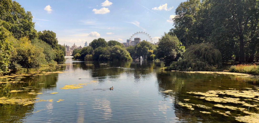 The bridge in St James's Park that I'm standing on had no tourists on it!