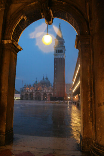 with a fine photograph, I think, of a rain-lashed Piazza.