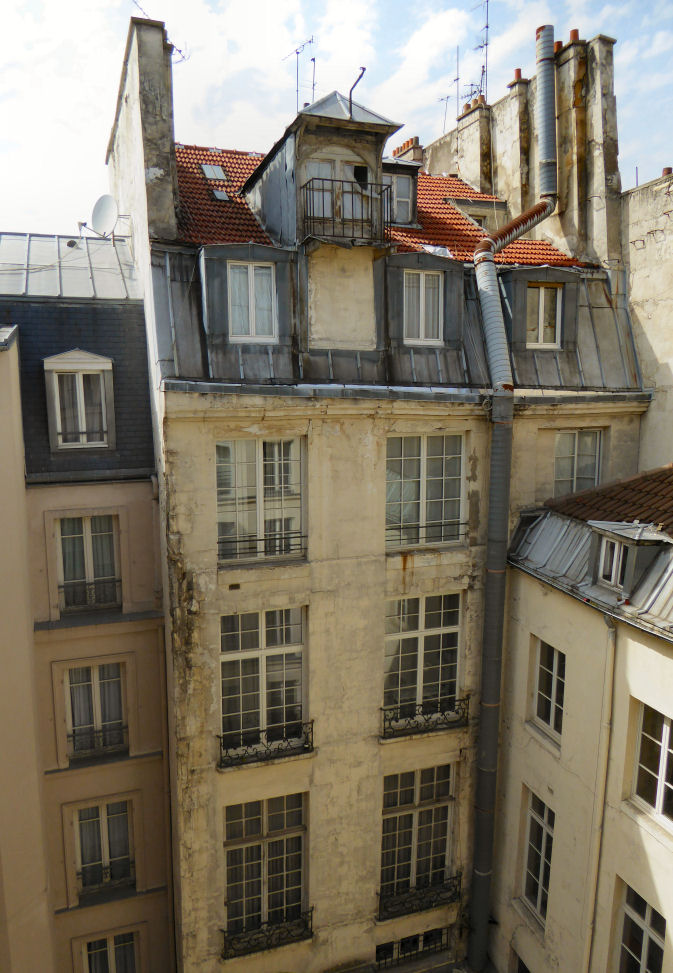 in no time, am in my room and opening my window onto a very Parisian, but very sky-filled courtyard (see right) - it seems like ages since I've had a hotel room where you don't always need