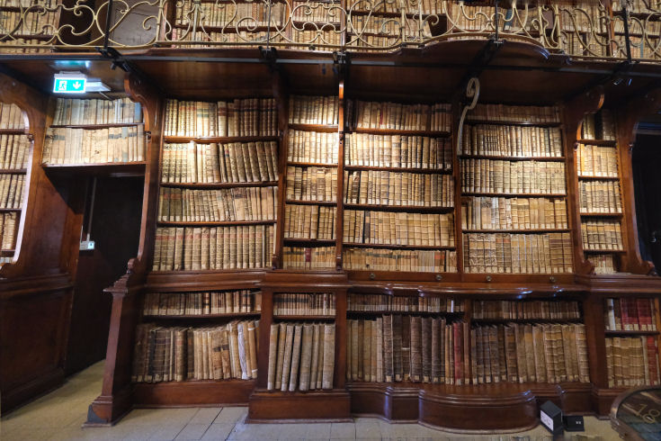 books in cases in an exhibition devoted to restitution, in two separate small groups. And then