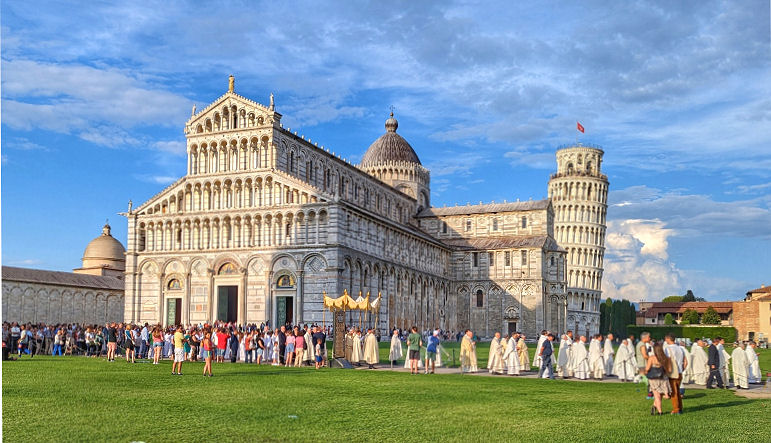 before the pandemic. Wednesday 7th Afternoon flight, trouble-free journey to Heathrow, short queue at automated bag-drop, and no wait at all at security or at Pret for the veggie New Yorker and mango juice. But then boarding was delayed, we took off late, and arrived about half an hour late in Pisa. (In flight I asked for my usual black coffee and shortbread, and the attendant asked if I wanted English Breakfast or Earl Grey. When I restated 'black coffee' she said 'yes you want it black but which type?' She eventually realised her mistake, but the whole exchange had a weird scripted Monty Python feel.) Then the baggage carousel at Pisa airport jammed and after some waiting and confusion the rest of our luggage started appearing on a different carousel. My hope of catching the 7.20 train from Pisa Centrale was thereby dashed, but by catching the 8.50 I got to meet Ilene and Gary of ouritalianjourney.com The journey flew by, thanks to story-swapping and Lucca gelateria tips, and they also helpfully walked me to my hotel, the Ilaria, where my welcome was equally warm. When I reported on my airport problems the desk clerk said 'Oh you came in at Pisa airport then'. Thursday 8th A good quiet night, but having got in late last night too tired to venture out and eat I sure needed my breakfast. A good sized mug of black coffee, tasty granola, fresh croissants and (gasp!) good fresh orange juice earned the hotel high marks. But the airy breakfast room filled up, and exploration beckoned. But after a slice of apple cake. And some more coffee. I decided to have an investigatory wander on my way to the Duomo and confirmed my impression that Lucca sure has a lot of churches. The Duomo has an impressive exterior and is famous for the Volto Santo: a crucifix supposedly carved by Nicodemus and miraculously transported to Lucca in 782. It usually lives in an octagonal tempietto in the nave but it's currently laid out in the left transept in a plywood restoration lab. The right transept is a feast tombs for fans of local Renaissance sculptor Matteo Civitali. In the sacristy nearby is the tomb of Ilaria del Carretto Guinigi by Jacopo della Quercia. The altarpiece in there was my highlight, a shining panel by Ghirlandaio. Across the Duomo's picturesque piazza is Santi Giovanni e Reparata. which has a rather lovely Romanesque interior. but is now deconsecrated and devoted to Puccini concerts. It's north transept is a large baptistery, with some nice fresco panels and considerable archaeological remains