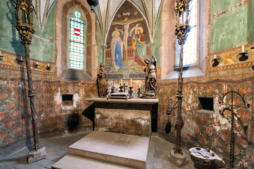 chapel decorated with frescoes, where the altarpiece missing its panels