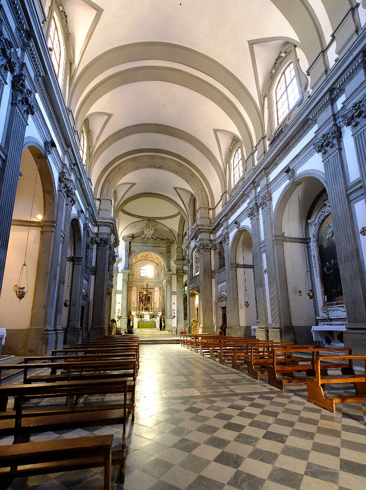 ![]() History The church's name comes from the name of the local area, a 'pigna' being an old brick pine cone-shaped structure used to moor boats on wharves once to be found nearby. In 1785 the old parish church was suppressed by the Grand Duke Peter Leopold, and this church was built, to designs by Bernardo Fallani, on land owned by Olivetan monks, chosen by the Grand Duke himself. Consecration followed on the 30th of November 1787. The church was restored in 1931, and again in 1972. Interior |
