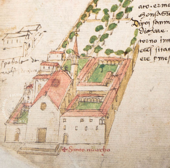 History A monastery, probably housing Vallambrosan monks, was here before it became a house of Silvestrine Benedictine monks in 1290. The Silvestrines themselves were later moved to San Giorgio dello Spirito Santo, having been accused of living 'without poverty and without chastity'. They made way for Observant Dominican friars from San Domenico in Fiesole, who were stricter Dominicans than the Conventuals at Santa Maria Novella. They took possession of the complex on March 15th 1436, with nine friars coming from the convent at Fiesole, including Fra Angelico. They found that the dissolute Silvestrines had left the buildings in perilous ruin, burning parts of the buildings and stripping them of their furnishings. The Medici family had been involved in the church's lavish celebrations of the Feast of the Epiphany, held here since 1417, which featured a procession celebrating the journey of the Magi by a confraternity of which they were members, with a performance in the piazza in front of San Marco. The Pope, then installed in Santa Maria Novella, is said to have encouraged Cosimo to fund the rebuilding, to atone for his sins of money-lending. That the complex was on the road from the Medici Place out to Careggi, where the Medici had property, and to Mugello, the family's place of origin, may also have been a consideration. Also, the Medici had been the Dominican Order's bankers since at least 1421. The Dominicans rebuilt the whole complex between 1437 and 1452. Michelozzo, the Medici's favourite architect, designed the church, pilgrims' hospice, cloister, library and friars' quarters. Fra Angelico worked here with Michelozzo for eight or nine years, until he was summoned by the Pope to Rome in 1445 to work on the (now lost) decoration of the Chapel of the Sacrament in the Vatican Palace. The church here was consecrated on Epiphany, January the 6th 1443. The first prior of San Marco, and friend of Cosimo de' Medici, Antonino Pierozzi became archbishop of Florence in