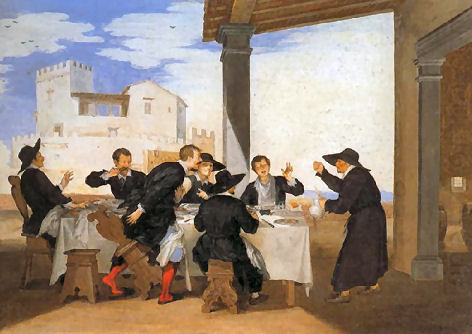 ![]() ![]() History Also known as the Oratorio dei Pretoni. Formerly the church of San Salvatore and belonging to the confraternity of that name, until in 1312 it became a hospice for elderly priests and pilgrim clerics and was dedicated to San Jacopo. Modernised for the Medici 1585-88 by architect Giovanni Antonio Dosio. At this time were painted the three altarpieces and a fresco cycle Scenes from the Life of Christ (1590) by Giovanni Balducci. Suppressed by Grand Duke Pietro Leopoldo in 1785. Interior Contains the tomb of Arlotto Mainardi, the parish priest of San Cresci a Marcoli between 1426 and 1468. Famous for his practical jokes, Mainardi is the subject of a famous 17th-century painting by Il Volterrano (Baldassare Franceschini) The Parson's Jest (see right), now in the Palatine Gallery of the Pitti Palace. The inscription on the tomb reads 'Piavano Arlotto had this sepulchre made for himself, and for anyone who wants to join him'. |