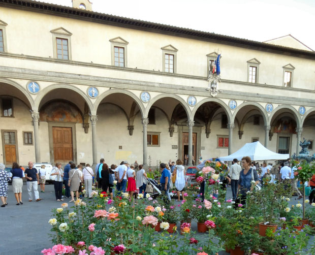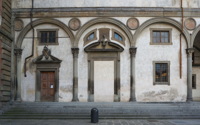 History In 1294 the newish silk merchants' guild, the Arte di Por San Maria, named for the road where most of them had their shops, was given responsibility for the care and education of Florence's orphans and foundlings. The two existing homes were found inadequate by 1419 and in that year a bequest by Francesco Datini enabled the guild to acquire land in near the church of Santissima Annunziata and they set about demolishing the ramshackle buildings on the site. The commission to design the spedale, named for the Innocents massacred by Herod, went to Brunelleschi, a goldsmith who'd only the sacristy in San Lorenzo to his name thus far. He began with the loggia, which was to prove influentially and is still impressive. His Chiostro degli Uomini (men's cloister) and the long Chiostro delle Donne (women's cloister) are also highlights. In 1427, following the completion of the loggia, Brunelleschi left, and the work continued under Francesco della Luna. The spedale opened in January 1445 and ten days later the first foundling - called Agata Smeralda - arrived. There were 90 children by the end of the first year and 600 by the 1460s. Many were the children of female slaves - most prosperous families had at least one such domestic slave, the labour shortages following the plague of 1348 only making the situation worse. Children were mostly left at night, initially in a basin beneath a window to the right of the entrance, where a woman waited listening at the window above. Around 1660 a wheel (which can still be seen, behind a grill) at the left end of the loggia, was installed, and was used until 1875.