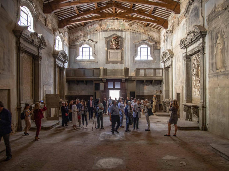 History Probably built before 1000, the church here was given to Benedictine monks from the Badia Fiorentina by the bishop of Florence in 1064, being originally dedicated to the saints Proculus (of Pozzuoli, a bishop of Verona in the 4th century) and Nicomedes. An inventory of 1441 tells us that San procolo had four side altars whose patrons were the Pannocchia, Villani, Arrighi and Valori families. Rebuilt in Romanesque style in 1622, when the orientation was reversed, this being the church with the high altar at the west end we have today. The building was then remodelled from 1739 to 1743, when it was acquired by the Confraternity of Sant'Antonio Abate dei Macellai, one of the four brotherhoods known as buche, which were known for flogging, strict discipline, and night-time prayer meetings. The other three such brotherhoods were at the churches of San Jacopo sopr'Arno, San Girolamo and San Paolo. The church was suppressed by the Grand Duke Leopold I and deconsecrated in 1778, when it was still controlled by the Badia, with its art mostly moved to the Badia. In 1786 it was sold to Cardinal Gregorio Salviati. From 1934 the church was used by Giorgio La Pira, a local politician who later served two terms as mayor, to celebrate masses for the poor - the Messa dei Poveri - at which food and money were given to the homeless and the sick (see black and white photo far below). These masses much later moved to the Badia and the church fell into disuse. The church was heavily damaged during the 1966 flood and closed, and then a portion of the roof fell in in June 2005, with accusations flying that the Salviati family had been refused permission to carry out restoration work which might have prevented the collapse. The roof was later rebuilt. In recent years there have been unsuccessful attempts to purchase the church by a nearby hotel and by the Bargello Museum to use as exhibition space. Prior to the eventual acquisition for the Bargello, in 2018 Michel Elefteriades, a controversial figure, bought the church from the Salviati family to make it into an art gallery, but the Italian Ministry of Cultural Heritage exercised its diritto de prelazione (right of refusal), not something it does often. Interior A Visitation attributed to Piero di Cosimo, Saint Proculus Healing the Hand of a Boy from 1739 by Gaetano Piattoli from over the main altar, a Virgin and Child with Saint Aloysius Gonzaga (the latter a 16th century Jesuit saint) also by Piattoli from 1739, along with an altarpiece by Matteo Rosselli Christ and the Wife of Zebedee of 1623 were removed for safekeeping in 2019 following the purchase of the church for the Bargello. Most of the other, more major works of art previously in the church having long since been removed. Some 14th century ceiling frescoes covered over by 18th century works are said to have been discovered when some of the roof collapsed in 2005. Lost art Three panels from 1305-10 from a dismembered pentaptych, almost certainly the high altarpiece here, by Pacino di Bonaguida, Saint Nicholas, Saint John the Evangelist and Saint Proculus, are now in the Galleria dell'Accademia. They are in the renovated rooms of the 13th and 14th century reopened in January 2022.