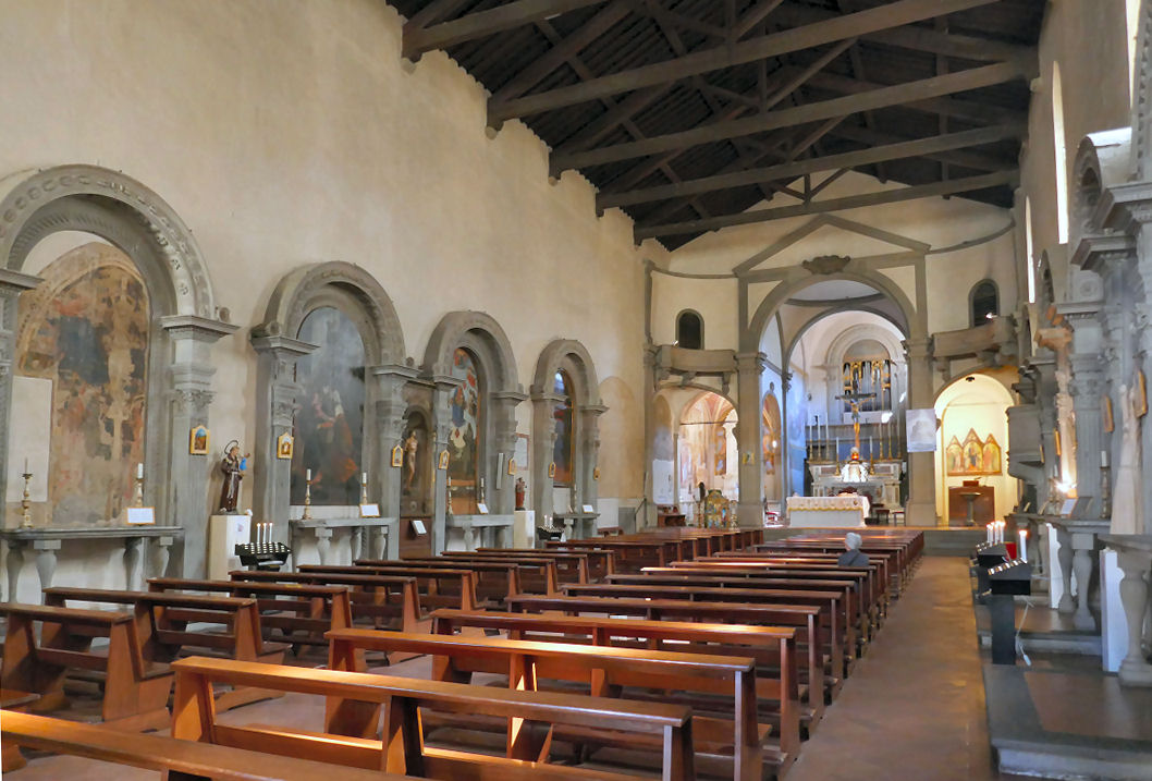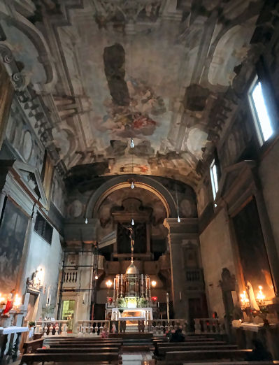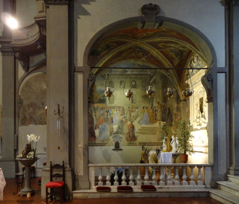 History Built in the 11th century by the Vallombrosan Order (a branch of the Benedictines) as part of an abbey complex. The church was partly destroyed during the 1529 Siege of Florence, and reconstructed as it was, except for the portico, built in a 16th-century style. Vallombrosan nuns, called the Ladies of Faenza, who had seen their convent, San Giovanni Evangelista, destroyed in 1529, to build the Fortezza da Basso, due to the same siege mentioned above, came here after said siege. Interior A single aisle, Latin-cross design with a rectangular apse. The church is said to contain the early 15th-century frescos from a tabernacle once sited at the other end of the via San Salvi, said to be by Lorenzo di Bicci, or his son Bicci di Lorenzo, or both. Lost art The Vallombrosan nuns who came here in 1634 brought with them The Blessed Humility Polyptych (1341) argued to be by Pietro Lorenzetti, along with Humility's remains. The Blessed Humility of Faenza (born Rosanese Negusanti) changed her name when she founded the female Vallombrosan order, and the polyptych shows, around a central panel depicting Humility herself, thirteen scenes of her life, including Humility Dictating her Sermons and Humility Curing the Nasal Haemorrhage of a Nun. Most of the remaining panels are in the Uffizi, with two in the Berlin Gemäldegalerie. A triptych by Giovanni del Biondo of c.1370 depicting St John Gualberto Enthroned, with Four Scenes from His Life, commemorating the founder of the Vallombrosans, from the church here is now in the small room beyond the sacristy in Santa Croce. ![]() A Coronation of the Virgin, a late (1511) work by Rafaellino del Garbo, was in the Louvre, but is now in the Petit Palais Museum in Avignon. Andrea Sacchi's The Three Magdalenes (c.1632/3) was here before going to the Uffizi. It was commissioned by Pope Urban VIII Barberini for a different church, probably. Also unclear is who the third Magdalene is, The second is Mary Magdalene de’ Pazzi, after whom the church of Santa Maria Maddalena dei Pazzi is named (and at which the aforementioned pope had two sisters cloistered as nuns). The third is a mysterious figure called St Mary Magdalene of Japan, India or China. Sutherland Harris in her definitive monogram on the artist observes that ‘she holds glowing coals, and was presumably roasted to death, but all the seven Mary Magdalenes martyred in Japan before 1633 were crucified or beheaded.’ There's is an oil sketch in the Palazzo Barberini in Rome and a chalk and wash drawing in the Royal Collection. The refectory - The Andrea del Sarto Cenacolo Museum The attached convent's refectory (see right) contains the fine and famous fresco of The Last Supper by Andrea del Sarto (see below right), painted for the Vallombrosans between 1525 and 1527. The relative severity of the treatment is said to be a reflection of the order's austerity. Judas is unusually not separated from the rest of the apostles by being placed on our side of the table or given clothing of a colour that stands out. It was said that Andrea painted himself as Judas after having betrayed and murdered his friend Domenico Veneziano. The story of the murder comes from Vasari, but as it turns out that Domenico lived for four years after the death of Andrea, so both stories fall to pieces. Vasari's stories, also involving Andrea's demanding wife, did lead, however, in the 19th century, to a play by Alfred de Musset and a dramatic monologue by Browning. Andrea was called del Sarto as his father was a tailor. Another story goes that the same defenders who were destroying everything that could be used by the besiegers in the 1529 Siege mentioned above, and who had partially destroyed the church, knocked down a wall to get into the convent but when faced with Andrea's Last Supper were so lost in admiration that they could not destroy it and, in fact, rebuilt the wall that they had already knocked down, the better to secure the painting. After the conquest of the city in 1530 the complex was given to Vallombrosan nuns, the monks having fled, and so the work was unseen until the the closing of the convent in the 19th century. Apart from the refectory (cenacolo) there's a long corridor and the former kitchen and washroom of the convent, used to display works of art since the acquisition of the complex by the state in the 19th century. The rooms are now full of altarpieces and fresco panels from other, usually demolished, churches, either by Andrea del Sarto or his contemporaries. There is some genuinely worth-seeing stuff here, often by artists you've scarcely heard of, and all hung so that you can get up close and appreciate. And then there's the Last Supper itself, which is one of the best, and said to have been Andrea's last major work. The faces, hands and feet are all equally, and extremely, expressive, the colours vivid and the paint looking fresh and unworn. I got given a leaflet about the cenacolo itself, but there are sadly no cards or books on sale dealing with the other works. Opening times I've never found the church open on several visits on weekday mornings The Cenacolo Museum Tuesday to Sunday 8.15 – 13.50 Closed Mondays, New Year’s Day, May 1st, and Christmas Day |