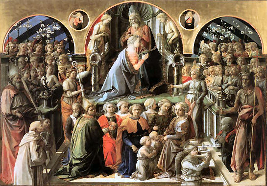 History Supposedly built on the site where Saint Ambrose himself stayed in 393, the church here was first documented in 988, but was probably older - the 5th century has been suggested, as has the presence of a Benedictine convent. It has been much rebuilt, notably in the late 15th century. The apse end, with its triumphal arch, as well as the baroque altar, was designed in 1716 by Giovanni Battista Foggini, with the gothic façade added in the 19th century, replacing the less-ornate gothic original. Interior Very much a used church, due to its proximity to the market and busy shopping streets, but also a church proud of its frescoes. It's wide and aisleless with an open timber roof. Four lovely chunky pietra serena Renaissance altars down each side. On the right as you enter is a detached fresco of the Deposition attributed to Niccolò di Pietro Gerini, large and in good condition, along with its sinopia (underdrawing), it was found behind the third altar on the left, as you can see from its retaining the outline of the arch of the altar embedded into it. The first chapel on the right, just after Cronaca's tomb slab in the floor, has a very faded fresco, the second has the lovely Madonna del Latte, flanked by Saints John the Baptist and Bartholomew. of around 1360 by the Master of the Rinuccini Chapel. It was formerly thought to be by Agnolo Gaddi. (Update May 2024 This fresco is due to be restored soon.) The third chapel has a dark an anonymous altarpiece, the fourth a bright Virgin and Child Enthroned. ![]() In the apse are crowded frescos of 1832/3 by Luigi Ademollo depicting The Massacre of the Innocents, The Last Supper and A Scene from the Life of Saint Ambrose. They are where there were previously works by Filippo Lippi and Masaccio and Masolino. Coming back up the left hand side we begin with the highlight Cappela del Miracolo, to the left of the apse (see below right) with its fresco of The Legend of the Miraculous Chalice by Cosimo Rosselli, restored in 2016. It contains portraits of Rosselli's Florentine contemporaries, including a self-portrait in a black beret to the extreme left. The ceiling is also frescoed by Rosselli with the Four Doctors of the Church. Also in this chapel is a marble tabernacle by Mino da Fiesole made to house the miraculous and venerated phial of blood. The legend says that on 30th December 1230 a chalice which had not been cleaned was the next day found to contain blood ![]() Mino's tomb slab is in front of the the chapel gate here too. Next is the Rosselli fresco's sinopia (see detail right showing a young woman with two children, who looks out at us in the finished fresco). The fourth chapel on the left has a dingy Saint Anthony Abbot with Tobias and the Angel by Raffaellino del Garbo, with an Annunciation above, the third has a Virgin and Child in Glory with Saints Augustine and Francis by Cosimo Rosselli. Next is a wooden sculpture of Saint Sebastian by Leonardo del Tasso, with a roundel of The Annunciation above, attributed to the workshop of Filippino Lippi, and the sculptor's tombstone in the floor in front. The second altar has a Visitation by Andrea Boscoli and the first a damaged fresco of The Martyrdom of Saint Sebastian by Agnolo Gaddi. Lastly on this side, as you return to the entrance, on the wall is a panel of the Virgin and Child with Angels and Saints by Alesso Baldovinetti. Another of the tombs of 15th and 16th century artists here is that of Andrea del Verrocchio who died in Venice in 1486 and his body returned here. Francesco Granacci, apprentice to Ghirlandaio and friend of Michelangelo, is also buried here. The paintings and fresco fragments here are mostly well-labelled, even if these are all a bit eccentrically translated. Lost art Filippo Lippi's Coronation of the Virgin (see below right) was commissioned for Sant'Ambrogio in 1441 by Francesco Marenghi, who is painted on the right under the Baptist's right hand, seemingly rising from a tomb, and paid for in 1447. It remained here until 1810, when it was stolen. It was later sold to the Accademia, from where it was transferred to the Uffizi in 1919. The frame is lost but a predella panel showing the Miraculous Infancy of Saint Ambrose (involving bees supping honey from his lips) is in Berlin (but not to be found in the Gemäldegalerie when I was there). On the left is supposed to be a self-portrait of Filippo Lippi in the garments of a Carmelite monk (looking out at us under the lily pot) next to St Benedict, probably. The centre foreground group includes three saints gazing out at us - the bishop Saint Martin and the martyr couple Eustace and Theopista, with their two children. This painting is described at length in lines 344-389 of Robert Browning's poem Fra Lippo Lippi, published in 1855 in his collection Men and Women. A Virgin and Child with Saint Anne by Masolino and Masaccio, painted probably around 1424 for the high altar here. Masolino painted Saint Anne and all the angels except for the top right hand one, painted by Masaccio who is also responsible for the Virgin and Child. It's been in the Uffizi since 1919. Fra Angelico's Virgin of Humility and Child, with Five Angels of c.1425 in the Thyssen-Bornemisza (on loan to Barcelona) was probably painted for an altar here. Sandro Botticelli's Virgin and Child with Saints Mary Magdalene, John the Baptist, Francis, Catherine, Cosmas and Damian from 1468/70 is his first known altarpiece. It was transferred (being then thought to be the work of Ghirlandaio) to the Accademia in 1808, and then to the Uffizi in 1946. The Madonna of Sant'Ambrogio by Andrea del Sarto, mentioned by Vasari, is long lost. Opening times Daily 8.00-12.00, 4.00-7.00 Città Rossa ![]() On January 9th 1600 Donato Pennechini was crowned king of the Red City (Città Rossa) at a festive mass in this church and anointed with holy water by the prior. The Red City was one of a network of groups called potenze, organisations of artisans and labourers, mostly fr