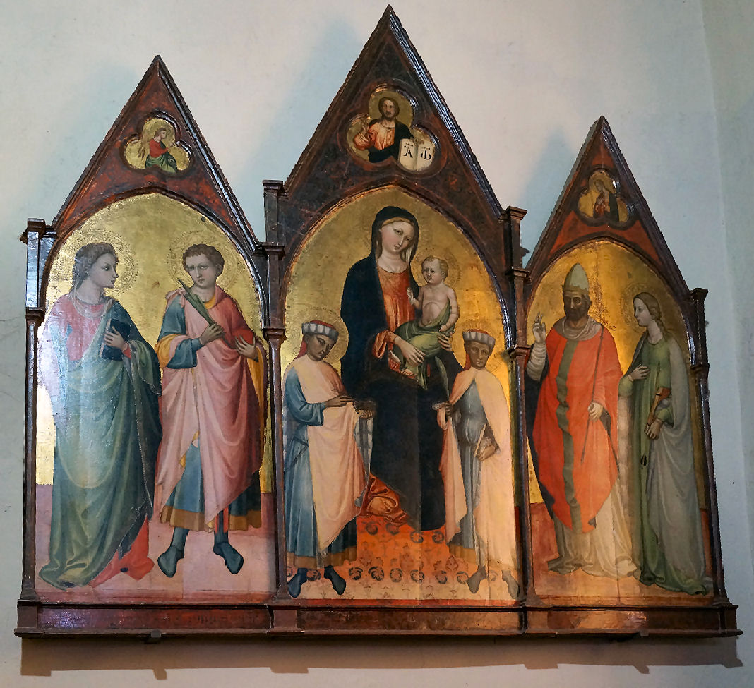 ![]() History Founded in 1332 by Basilian monks, known as Ermini (Armenians). At the end of the 15th century it was used as a hospice by the Congregation of the Priests of the Holy Ghost - a glazed della Robbia terracotta roundel with a (headless) white dove on the wall facing Via San Gallo is a relic of this time. Various alterations until taken over in 1939 by the Seventh Day Adventist Church. The most recent renovation work was in 2008. ![]() Lost art There are six panels from an altarpiece by Agnolo Gaddi in the Alte Pinakotek in Munich from c.1393/96. Two panels from the main register are full-length Saints Julian and Nicholas, with the four predella panels showing scenes from the two saints' lives, two each. They were thought to have come from the chapel devoted to Saint Nicholas at SS Annunziata, but a recent theory has the altarpiece being commissioned by banker and merchant Gabriello Panciatichi for this church. The argument involves 18th century descriptions of this church mentioning an altarpiece of similar iconography, and Panciatichi having paid for an altarpiece with the same saints prominent in a church near Pistoia. |