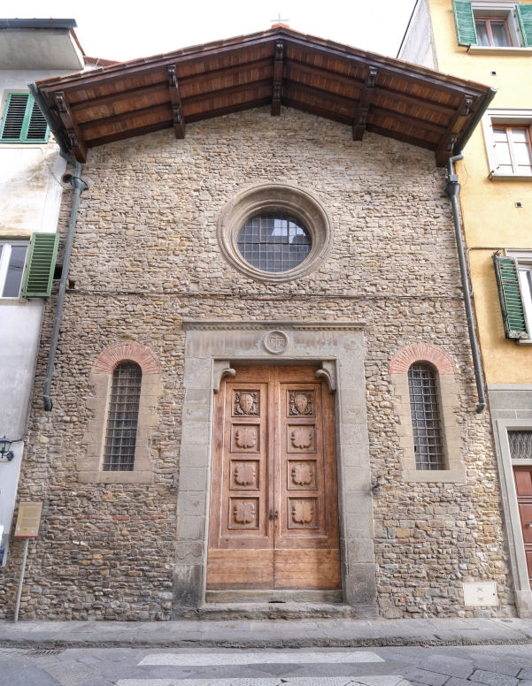 ![]() History An oratory belonging to the Compagnia di San Niccolò which was founded in 1417 as a scouts-like club for boys to do good works. This church was built for them in 1561. The name del Ceppo derives from putting offerings in a slot in the wall. Interior In the atrium, on the left-hand wall, is a fresco by Pieter de Witte of the Virgin and Child between Saints Nicholas and Jerome from c.1585. In 1734 the ceiling was painted with The Virgin and the Trinity welcome Saint Nicholas into Paradise by Giovanni Domenico Ferretti, with trompe l'oeil architecture surround by Pietro Anderlini. Paintings flanking the altar by Giovanni Antonio Sogliani depicting the Visitation and St. Nicholas with Two Children of the Confraternity of 1521 were used as standards by the company carried at the head of processions. The Crucifixion of 1610 by Francis Curradi over the high altar replaced a panel of the Crucifixion with Saints Nicholas of Bari and Francis from around 1430 by Fra Angelico. Damaged in the 1966 flood, it is now in the sacristy here, following the completion of restoration in 1993. It got further work in 2017-18. It is formed of cut-around figures to simulate sculpture, but the head of Saint Francis was cut off and sold, probably in the late-19th-century, and is now in Philadelphia. Opening times There now seem to be occasional guided open days, for which at least €15 must be paid. |
