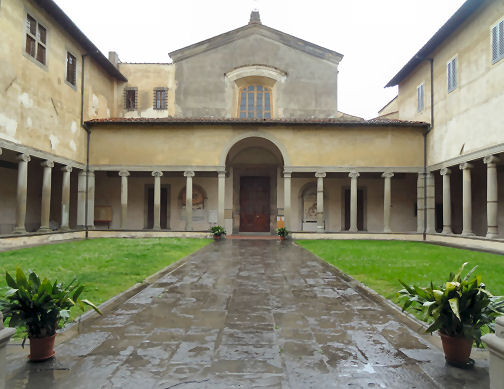 ![]() History A convent founded in 1395 by notary Niccolò Manetto for Vallombrosan nuns from his birthplace. Restoration of the existing buildings and the building of a church took five years. It was originally named for both San Giovanni Gualberto and Santa Verdiana, the latter a nun from Castelfiorentino who lived for 34 years, in the early 13th century, in the convent of Sant'Antonio Abate, walled up in a cell there together with the two snakes which got into her cell towards the end, but whose presence she never revealed. Saint Francis himself is said to have visited her for counsel in 1221. For Giovanni Gualberto's story see my entry for the church of Santa Trìnita. More building work in 1425, thanks to the nuns' dowries and income from land left by Manetto. The convent was further enlarged in 1462, with a cloister built, with Medici money - some say Cosimo the Elder but it's more likely to have been his son Giovanni. Further work was carried out during the 16th and 17th centuries, including the acquisition of works by Pier Dandini, Pietro Sorri, Fernando Melani and Vincenzo Meucci. still said to be in place. In 1589 a cult developed here around a miracle-working terracotta sculpture of the Virgin and Child. Following suppression in 1808, after which the nuns returned, and 1866 there were plans to turn the complex into an abattoir and then a women's prison, which it became and during WWII was used by the fascists to imprison female partisans. In 1983 the prison at Sollicciano was finished and the inmates then here were moved there. It was then sold to the university and is now used by the Faculty of Architecture. The cloister often gets used for art exhibitions. Lost art The Baptism of Christ by Andrea del Verrocchio and Leonardo da Vinci originally in the church of San Salvi, was transferred to the church here. In 1810 it was moved to the Accademia and then into the Uffizi in 1959. |