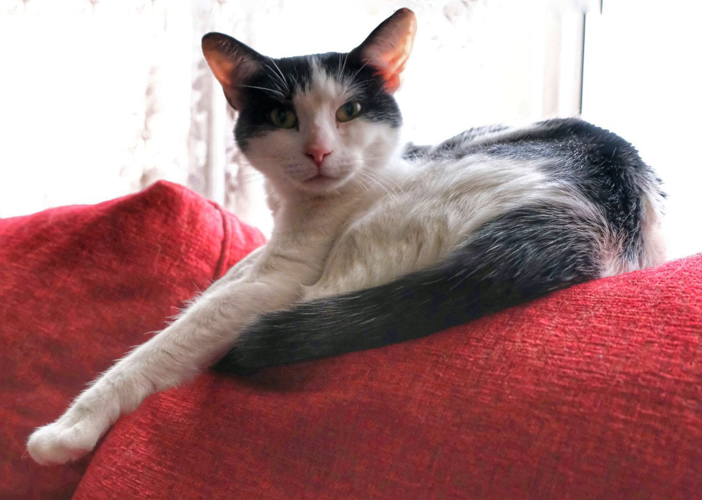 the sofa, as she still runs from visitors and the doorbell.