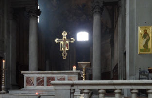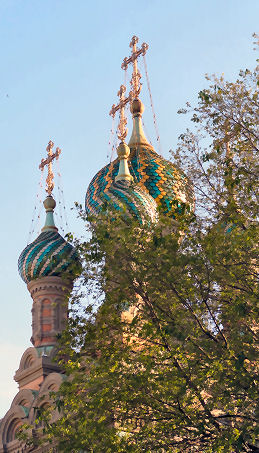 Some evening church searching took us up the Via Nazionale and over the Torrente Mugnone around the Fortezza and down through some railway-side rough territory and back to SMN. Five churches were found, including a surprise Russian Orthodox church with three very jazzy onion domes. Then pasta, bath and bed.