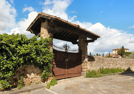 This morning we met up with Jane's friend Helen and her daughter Sally, who flew in last night. It's their first time in Florence so we took an acclimatising walk past the Duomo, through Piazza della Signoria and over the Ponte Vecchio. Then the bracing trudge up the hill to Piazza Michelangelo to watch the Japanese brides, and on up to San Miniato. Phew. But what views! Photographed a few churches from the list on the way up too, including the up-a-country-lane San Leonardo in Arcetri, near which was a rather nice gate (right). Then back down the hill and over to Santa Croce to introduce our guests to the delights of Baldovino, from yesterday. And I even ordered that same wonderful pizza from yesterday, and it still was. To Gelateria Neri on the way back - I had an apple and Mexican spicy chocolate coppa. Having gotten turfed out of our original rooms for a 'plumbing emergency' it was reassuring that when we got back there was a big tankery thing outside the hotel doing some major pumping. Some strolling around some best bits with H&S in the evening - San Lorenzo and the market, SS Annunziata, and I finally found, and bought, a big poster of the famous 1470 Chain Map of Florence (the link is to a page the also features a virtual-3D swoop through the map). So a happy bunny was I. Then to the Lampara again. |