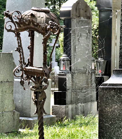 Day 6 Today we split up to cover more ground - Jane to the Hundertwasser house, me to the Zentralfriedhoff, Vienna's flipping huge cemetery (see right and below) . A short train journey out towards the airport, it was also the location of the final funeral in the fine film of The Third Man. The station is right by a side gate, but the maps are available from a very discrete info desk near the front gate, so I headed there, got some water as well, and started roaming. It's a very big place - it even has buses running in it. There are many famous musicians buried here: several Strausses, Schoenberg, Schubert, Salieri, Beethoven, as well as Falco, of Rock me Amadeus fame, and Joe Zawinul. This last musician, the man behind Weather Report, being the only one you'll find on my media player I was happy to find his grave, and note that his wife shared my birth date. Many photos of weeping stone angels, ivy-clad columns, and crumbling rusty lamps later I returned to town for lunch at the cat cafe - tofu parcels of fried rice, with several fluffy blighters playing it cool despite much attention. I decided on a cool attitude too, only scritching a couple of heads in an offhand way on my way out. I can't help but feel a bit uncomfortable about the whole concept, though - there's an element of compulsion bordering on feline prostitution, I think. |