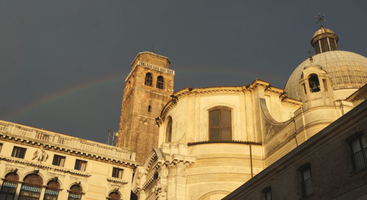 So, my 13th visit to Venice, with last year having been the first year I'd missed since 2005. A bit of a been-there-done-that attitude had infested my looking forward to this trip, but some recent book reading had made me realise that I had quite a few favourite places and paintings that I was going to have to make pilgrimages to. That and the need to check out various developments and changes for my churches website, and the rarely-open Biennale venues, meant that a fair amount of looking-forward-to started creeping into play. The journey was pretty standard, with a 2.00pm flight making for an unearly rising. The security queue at Gatwick was a bit longer than lately, the departure lounge pretty chocka, the BA flight delayed by about half an hour, the cheese and tomato wrap very edible and the passport-checking and case-collecting at Marco Polo unusually swift. I had bought my weeklong vaporetto pass (with added airport buses) online, but was having no luck finding the machine to collect it from in the airport, the desk where you did so having disappeared. A more than somewhat unhelpful chap at the ACTV desk seemed perversely intent on not revealing to me the location of the machine but I eventually found it out in the forecourt by the bus stop. It was not that tricky a business once I found it, though - I just had to type in my code number, and soon I was on a no. 5 bendy bus bound for Piazzale Roma. Not far then to the Ca'Pozzo Hotel, stopping on the way to take some photos of churches with added weather (see right). Leaving the threatening skies outside the hotel check-in process was swift, but extended enjoyably by a good discussion of the dire state of Italian politics, still inexplicably dominated by Berlusconi. I was given the same spacious and tasteful room as last time, and after unpacking I went out for an evening stroll up around to the Misericordia and back through Cannaregio, encountering four cats - an unusually high tally - mostly tabby and mostly not friendly beyond a tentative finger sniff. Back to Al Faro, my restaurant discovery of last time on the calle leading into the Ghetto, for a Bufala - a pizza with chunks of mozzarella and fresh tomato and rocket. Afterwards I headed over the bridge in front of the (totally scaffold-covered) Scalzi church in search of gelato. And I got lost! I finally found myself by the Frari and then found a new branch of Grom. So, with a tasty tub of vanilla and fig, I wandered back towards my hotel. And got lost again! But it was interestingly lost rather than utterly lost, so no panicking was necessary. Back to the hotel to type this up, quaff some herb tea, and head for bed. |