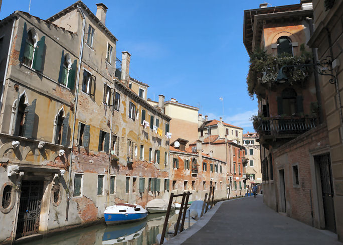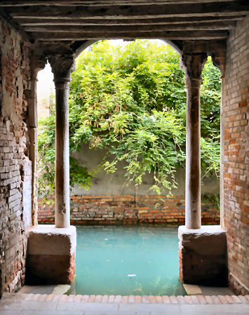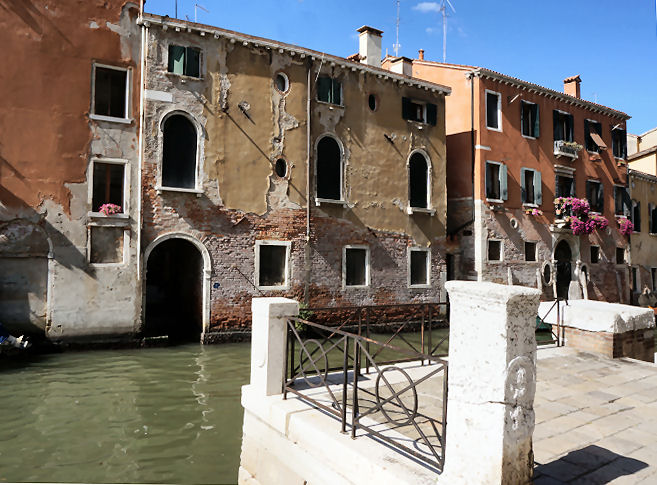 The Ca'Pozzo has been quiet, as usual, but the women in the next room these past few days seem to be in training for some sort of European laughing competition. Not as bad as some disturbances but...how many times do you laugh per hour? Having my window open has been good as, although it's above head height and you can't see anything more than foliage, upper floors opposite and sky, you can hear people talking and washing up, televisions showing crap Italian game shows, washing lines squeaking, a cat meowing to be let in (most evenings)...real life in other words. For a reason now long forgotten I booked a late flight home, so I have until about 3.00 before I need to get going to the airport. I haven't been to the Accademia this trip, but I've also not been very much around the San Polo/Santa Croce district. As a fitting end to a trip where I got back in love with Venice's sheer Venetianness the latter won out. Not the warmest or most wind-free day so far, but Venice's two smallest sestieri didn't disappoint with their usual waywith quiet calle and calm backwaters. And some good photo opportunities. San Giacomo dell’Orio, San Stae, and San Polo all got good visits too. And I even found the very mysterious place depicted (see right) in a painting we bought from my old mate Kim, who I've mentioned on past visits, but who's now moved to San Francisco. Lunch was falafel in pitta, eaten in my regular spot on the Fondamenta Malcanton. Got to the airport too early, read a bit, wandered the shops (more upstairs now, including two bookshops), the flight was delayed a bit, had the same mozzarella and tomato wrap to eat on the plane, got through passport control and baggage collection swiftly, presumably as it was late evening and more peaceful. Met by J. and whisked home on a train. Cats awaiting. Time for bed. |