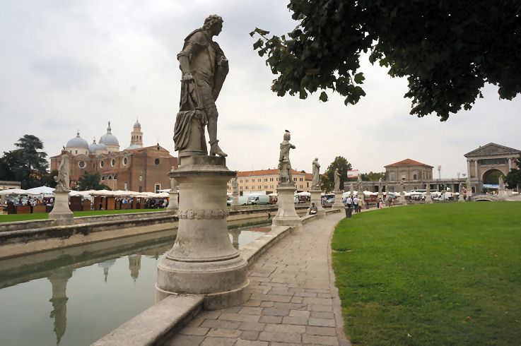 Today I took me dearly to Padua. My reasons were many. Having been there in March and bought myself a Giotto travelcard holder I had to return and get one for my envious n&d. I also wanted to get a better look around the art in the city museum, attached to the Scrovegni Chapel, and buy the booklet about Altichiero's frescoes in St Anthony's, which had been sold out in English back in March. Also I'd managed to miss the main town square and its picturesque canals. The train from Venice to Padua takes no time at all, well less than half an hour. My out ticket was strangely much more expensive (€16) than the return (€3.55) which I discovered was because I'd booked myself onto the plush fast train to Rome (and Florence) which also stops at Padua. The swishness of the seats and the smooth swiftness of the ride was almost worth the extra. Almost. The street into the centre of town runs perpendicular opposite the station entrance and the Scrovegni Chapel and Civic Museum complex is very soon reached. I decided to forego the airlock jiggery-pokery of another visit to the chapel and head straight into the museum. There's lots of art, and bits of old stone too if that's your thing. The art is mostly not major, but lots of it's pretty good and none of it is really bad, and the museum is not small. I enjoyed myself, and the rooms were not crowded at all. Lots of pseudo-Bellinis, one by the man himself, some Veronese, a Tiepolo, a Giotto crucifix, some other nice early stuff and bits of fresco, and absolutely no postcards or catalogue to remind you of what you liked. Which all adds to the hazy elusiveness of the experience, I suppose. I then headed towards St Anthony's Basilica and the main square, roughly. OK - I got lost, but found my way back in the right direction, found the square, and found that it had a huge antiques and collectables fair all around it. A slice of onion foccacia from a place around the edge was lunch, and then I went to have a look at the stalls full of old stuff, not all of it junk. After some photo-taking I went into the Basilica complex, found the shop, found the Altichiero frescos book, bought it, found my way out of the shop, and then found the frescos themselves (see right) which are shamefully unvisited. I soaked them up for a while, wandered around the rest of the place, and discovered the also impressive (and recently restored) Chapel of Blessed Luca Belludi painted by Giusto de Menabuoi. The front of St Anthony's is now covered in scaffolding, by the way, which it wasn't in March, and most of the chapels around the back of the high altar are undergoing work too. I found my way back to the station with only minor amounts of lostness (I should really have got a map, I admit it) and was swiftly back in Venice. The crowds between the station and my hotel confirmed the wisdom of my getting out of Venice and into somewhere quieter. Amongst the most annoying people were the woman who was gazing continuously into her mobile phone and smoking as she walked through boring old Venice, and the two stupid blokes with those annoying aggressive (penis-substitute) dogs kept macho-ly not on leads, who of course got into a noisy fight (the dogs not the blokes). Thank goodness for happy fresco memories at such times. Last week the BBC website was forecasting rain every day for the beginning of my trip, so I'm happy the first rain only started falling around 6.00 this evening. It lasted about a half hour and then I went for a walk - the classic circular up to the Misericordia and back. I saw the two ducks again, near the boatyard this time, and a couple of blokes sleeping rough in the arcading along the canal behind the old Scuola. Also a large fluffy tabby cat. Back to Al Faro for another Bufala pizza, and for a dolci - a rice pudding with coconut, pistachio and raisins, which was very nutty and not too sugary, with a cherry on top. Back to my hotel, all of 5 minutes away, in the rain. |