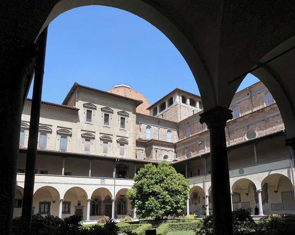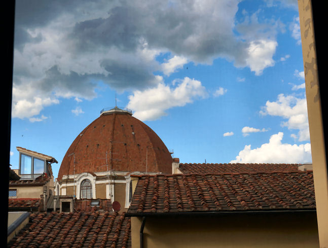 What are my plans for this trip? Well, there's the Pontormo and Rosso exhibition at the Strozzi, the church of Santa Croce has just last week opened a new exhibition space, there's a new Gallery of the 1900s (Museo del Novecento) in the renovated Leopoldine complex opposite Santa Maria Novella, also opened a matter of days ago, and the Opera del Duomo museum closes for a few years for renovation half-way through my week. My hotel booking comes with a three-day museum pass too, so I hope to maybe be doing the Accademia and Uffizi some justice, the former of which I've not visited since the early 90s. I also want to catch the train and spend a day in Bologna, to at least visit the Pinacoteca so cruelly closed to our party on my recent trip to Ravenna and Bologna. And maybe also buy some more of the yummy chocolate-covered coconut bar bought from a stall in Bologna on that trip. Have you noticed how airline pilots always have solid and dependable names, like Brad or Henry, or at least they say they do when they do their reassuring greetings as you're sitting and waiting for takeoff - they're never called Barry or Tim? Well, this morning my flight was ably piloted by a Kevin, I kid you not. The only flies in my travel ointment were the long wait for the baggage carousel at Pisa to do its thing, but my case being in the first half dozen out made up for that, and the fact that trains don't run from the airport to Pisa Centrale station at the moment. They're building some kind of people-mover thingy so instead of the train there's a bus which costs €2, or less if you buy a ticket before you board. As Pisa is the usual way to fly to Florence I would have thought that I might have read about this development. Makes one wonder even more about maybe trying the new BA direct flight from London City to the little-used Florence airport. The train from Pisa C was new and clean and not full and got to S.M. Novella station in about an hour. I'm trying the Hotel Cerretani this time, and first impressions are good, for having friendly-but-not-fawning staff, good strong wifi, and a bottle of complementary water for me to knock back as I unpack and type this stuff. The room is spacious and the bathroom marbley. The large window in my room is nicely full of the dome of San Lorenzo. Instead of the usual mozzarella and tomato wrap BA's inflight veggie option was a mini cheese and onion roll and half an egg and cress wrap, the latter of which I didn't eat, because I don't do eggs. So an early evening meal for this more-than-peckish traveller, methinks. Creature of habit that I am I had to go and have a Scugnizza pizza (mozzarella and fresh tomato) at La Grotta di Leo, with an insalata mista and a birra media. The waiter even remembered me, after an initial mix-up where he thought I was railway station staff. Tradition took me to the gelateria in Piazza Santa Maria Novella too (cocco & limone) and the shop nearby that does nice panforte, to go with my evening herb tea, made all the more posh by my room having an actual kettle, so I didn't have to use my bought-in-Venice EU-law-breaking element thing. |