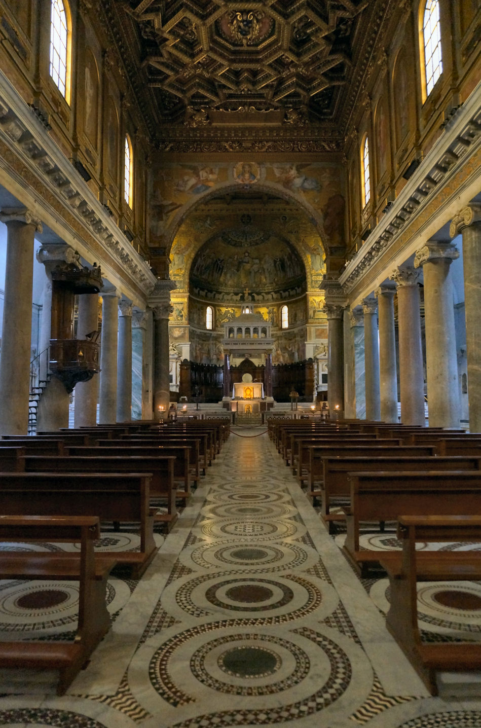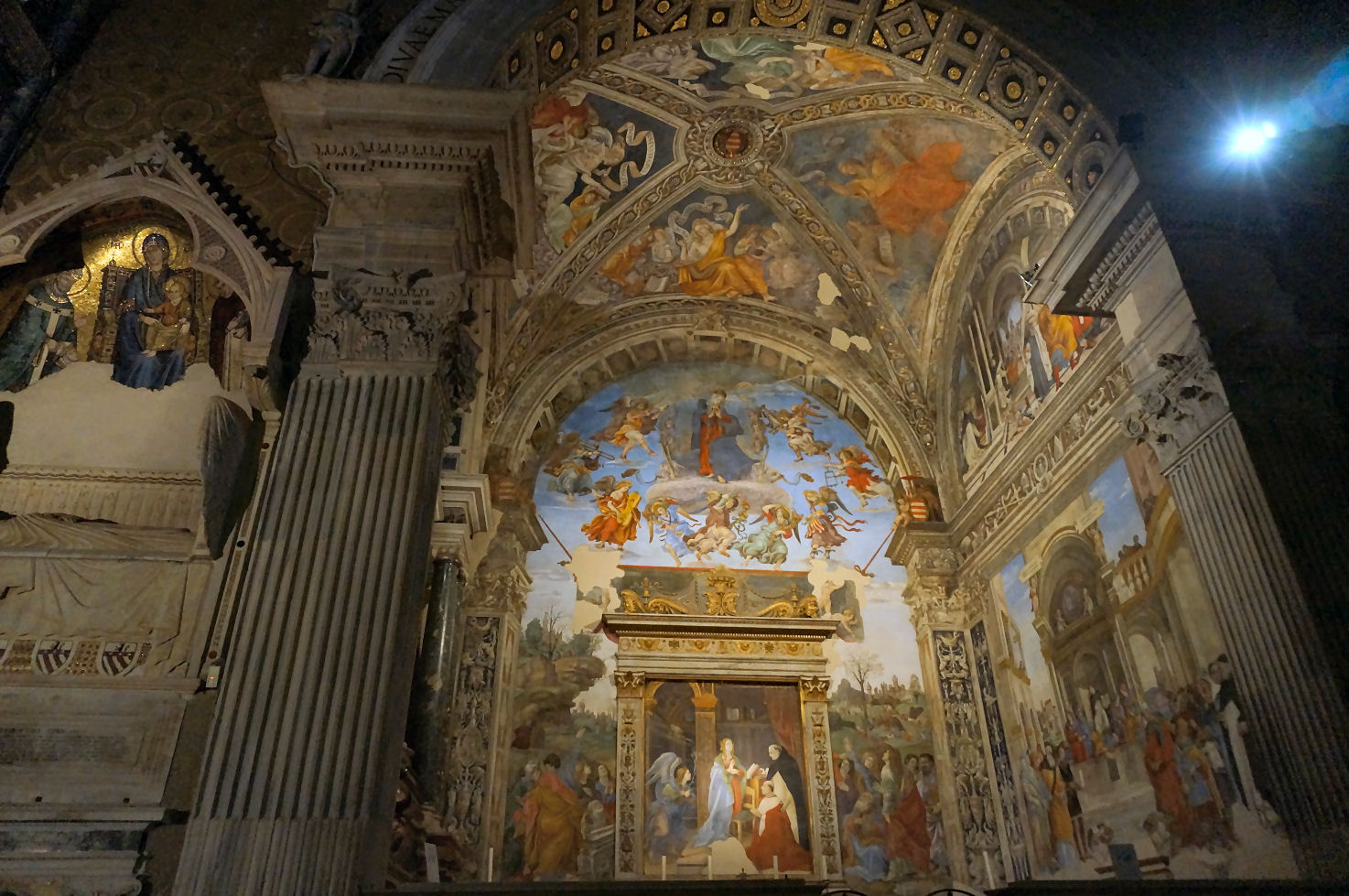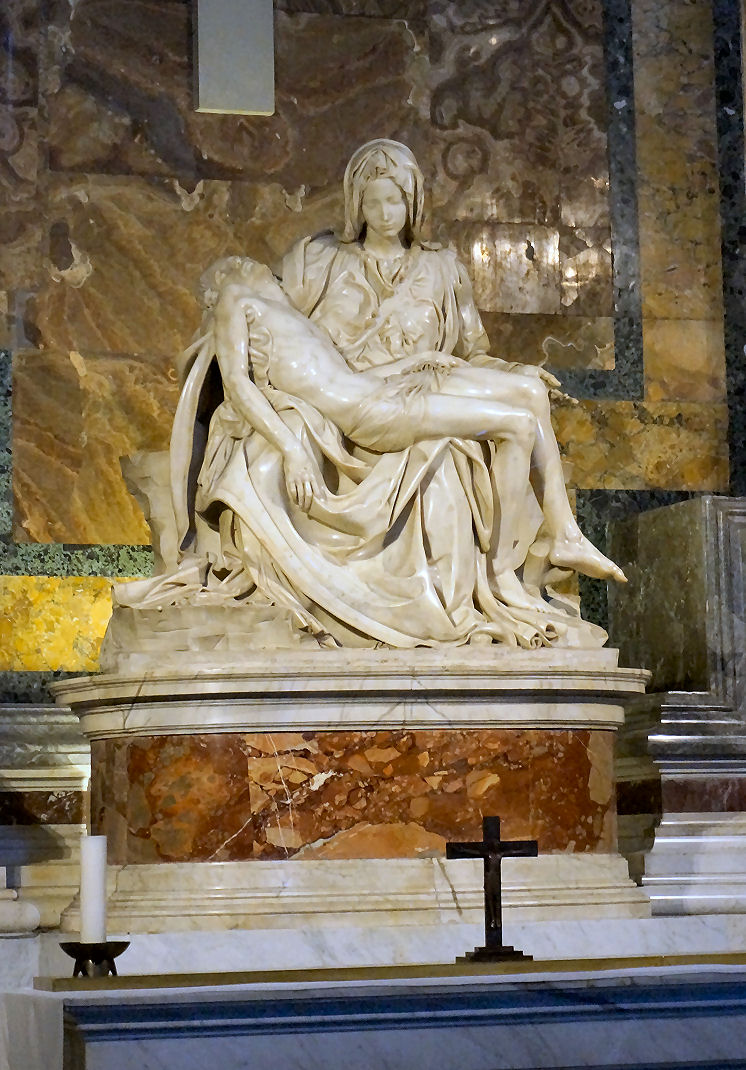 Wednesday 25th February Having visited Rome just the once in 1994 this revisit has been a mighty long time coming. It's an art-historian guided tour courtesy of Art Pursuits, lead by Joachim Strupp, who runs the company and, as I'd discovered mere weeks ago, gives tempting and trip-encouraging lectures on the Roman Baroque, amongst many other tasty topics, at the V&A and elsewhere. An untroublesome journey to Heathrow, which is very much not my favourite airport for getting to at the crack of dawn. I did learn, however, not to trust the train indicators on Piccadilly Line platforms - it's the trains themselves that tell the truth if there's disagreement. I met the tour people at the airport, went through security pretty swiftly, had an Americano and a berry muffin, the flight was on time...you know the drill...when it goes well you barely lose concentration on your book reading. Arriving at Rome Fiumicino there was quite a queue at passport control, but I skipped through as there was no-one going through the EU automated gates, which was a weird reversal of the usual experience coming into UK airports. Two buses and a car took us all to San Pietro in Montorio on the Janiculan Hill for some pre-hotel culture. Some good sweeping views, an unusually impressive Sebastiano del Piombo altarpiece of The Flagellation and Bramante's famous Tempietto. All very refreshing for the soul, and then we walked down the hill through Trastevere, getting the flavour, and over the river to our hotel, the Ponte Sisto. There is a gelateria just opposite, my bathroom is well marbly, the desk in the room has enough drawers for gadgets and leads, and outside my window is a pedestrianised street, so you can open the window and get chat and a distant (instrumental) busker but no loud traffic, which is just what you want for background atmosphere whilst typing this stuff. What you don't need is to learn that because your memory card was not properly pushed home none of the photos you took this afternoon have come out. And the camera didn't warn me. Bastard! Hence the white space over on the right, until my evening stroll. The group evening meal, at a restaurant called Ditrambo in Piazza della Cancelleria was good for erudite chats (about art, cakes and cats, of course) but the food was special too. The best veggie food I've had in Italy that wasn't a pizza or a bowl of pasta with sauce but was, well, different and flavoursome in surprising ways. And then there was the chocolate cake. All of which nicely makes up for the fact that I've not been able to post this up on my website yet, due to technical difficulties. Maybe tomorrow. (This problem never was resolved, so this all went up when I got home.) Thursday 26th February Before the day begins I have to report on the Hotel Ponte Sisto's breakfast. You know how I judge so: orange juice - not bad but not truly freshly-squeezed; cereal - muesli and cornflakes OK; croissants: only the pre-filled sugary sort; pastries - small but fresh, and often still warm. So, acceptable, but not special. Our first stop was the Casa dei Cavalieri di Rodi, built for the Knights of Rhodes but now housing their successors, The Knights of Malta. It's not the easiest place to get into, but the excitement that that phrase encourages was somewhat quelled by the first room we went into - a boxy and functional plain space. But the loggia up the stairs was truly a treat, with some spectacular views (see right) and fascinating frescoes on the internal walls. These latter were very pale and weather-worn, but the fragments were tantalising for being almost totally decorative and depicting landscape. On our walk to the Colosseum we passed a pack of film crews, one of which insisted on accosting our leader, Joachim, and interviewing him about Beppe Grillo - the Italian comedian and activist who makes our Boris Johnson look like a serious politician. They were waiting outside the hotel where he was staying. The Colosseum we appreciated from the outside circling around it and then we went into and around the Forum. Joachim did a mighty good job of telling us good stuff we didn't know, and Nicola brought us cans of Lemon Soda and chocolate biscuits half way through. All hail them both! Lunch in a fine wood-paneled joint called the Abbruzzo was, for me anyway, some lovely fresh gnocchi in a tomato sauce. Good bread too, and an espresso to provide stamina for the afternoon visit to the Pantheon, which is always impressive. It's lack of any good art was made up for by a visit to Santa Maria sopra Minerva. On the way we made a stop for essential gelato, which I'm pleased to report that most of our party took advantage of. Me I went for scoops of cinnamon and pear, and it was fine. S.M sopra Minerva was the artistic antidote to the Pantheon because it has the very special Carafa Chapel frescoed by Filippino Lippi (see below) and a lesser-known Michelangelo statue of The Risen Christ. The latter is oddly muscular and nude, with a plasterwork cloth over his ![]() private parts, which has not, like most such additions, been removed, presumably because it's still in a church. This church is also the burial place of Fra Angelico, with a large tomb slab, so a bit of an art pilgrimage destination. Then all back to the hotel for some resting. After which a meal with a select bunch of us at a restaurant called La Quercia - mixed starters for first course (for me the veggie options were fagioli in tomato sauce, a little bruschetta, mozzarella balls, and a vegetable flan) then mixed veg and tagliatelle topped with parmesan for main course. Very flavoursome. And as we were not the whole party, and our leader Joachim was not there, we were able to have a good gossip about the party members not present, especially Joachim! Friday 27th February Today was looking like, pardon my prejudice, the centrepiece of the trip, it including an evening just-our-group visit to Raphael's stanze and the Sistine Chapel. To add to it's exh
