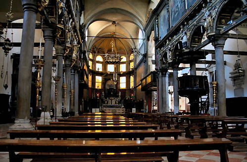 September On my way to San Pietro di Castello I was waylaid by a couple more 18th Century experiences. Firstly Santa Maria del Giglio, as I was passing and hadn't had many of my Chorus card churches ticked. It's an OK church, and is disproportionately rich in 18th Century art, it says here, but not great art says me. Similarly admirable if not loveable is San Moise - the church at the end of the wide Calle XXII Marzo that makes you go 'blimey!' or whatever is your country's equivalent. The masses of baroque ornament crawling up the facade is matched by a weird high carved altarpiece scene of Moses receiving the tablets. My guidebook uses the word ungainly, and it's politely right there. I needed some respite from this 18th Century overkill, so took refuge in San Zaccharia - a lovely space with one of my two favourite Bellinis. If you visit you have to pay your Euro to visit the chancel of the older church, as there are three exceptional and grand gilt-framed polyptychs, and the walls and ceiling have some considerable fragments of fresco. Yes the lesson of the last two days is that Venice does have frescos - they're just a bit the worse for wear and usually to be found hidden away. Under this chapel you'll also find a romantically flooded crypt (see right) where several damp doges are buried. I then attempted to follow my guidebook's walk around the area to learn about some palazzo, but had trouble following the instructions and ended up wandering in a generally unfettered way. So I visited some fave spots (see right), found some new ones and ate a funghi pizzetta sitting in Campo San Zanipolo. (Who knew pigeons liked mushrooms?) Which was followed by a pistachio and fior di latte ice cream. At the flat I had some tea and...