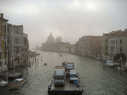 Sunday 1st October Up early to finish packing and get the flat in order, then off to Piazzale Roma to catch the bus to the airport. I was out just before 9.00, so not that early, but not many people were about and it was a misty morning. Last night I'd been up by the Rialto and noticed TV trucks on a flat-bed barge, with thick wadges of cables running to the Goldoni Theatre. TV crews need their trucks and there are no roads in Venice, so I suppose it makes sense. It also makes for an odd photo if you happen to catch them heading off out into the lagoon the next morning. The flight home was uneventful, but plagued by queues and long waits and loveable types who think queues are there to ignored. My flight got into Gatwick only 30 minutes late. Met by J. and taken to lunch with the family, and home to sunny (intervals and showers) Tooting. Not too cold, and the leaves have not gone too brown and red in my absence, as sometimes happens taking holidays this time of year. Thanks for your attention, and the kind comments by e-mail and in places like slowtalk.com. Until the next time... |