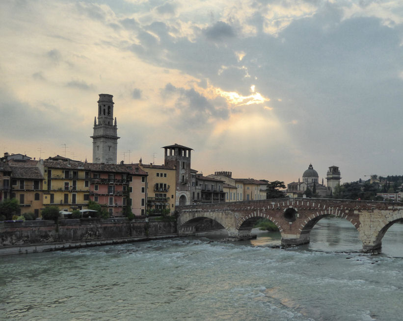 Sunday 12th July Getting to Gatwick was no problem, except sitting next to two girls talking loudly so like the intensely annoying woman in W1A, with friends called, like, Zack, Will and Ollie and all living in, like, Dalston. There was a huge easyJet bag drop queue which we got to gratefully skip as our flight was only about an hour away. Our wanting two cheese rolls exceeded the onboard supply by 100%, and the aircraft had two more trips to do. Having learnt my lesson last year I went to buy our bus tickets from the car park window at Verona airport. You can buy them on the bus but then everyone queues longer. It was pretty hot here, but checking into the Accademia was a breeze, due to staff efficiency and air conditioning. I had a short rest but Jane wanted a longer one, so I went out and had a Venchi gelato (ginger/cinnamon and coconut), photographed opera scenery in Piazza Bra and found a church which was not on my list open, with a Romanian Orthodox service going on. In the evening we strolled as far as Sant'Anastasia and then returned to a pizza place we'd had a good feeling about, and we were right. Da Mario up past the Scaliger tombs - a vast variety of tasty looking pizzas, good beer, and a crunchy side salad. Fresh was the word. Gelati after (I had pink grapefruit and almond which was, I discovered later, the same pair I had on my first evening last year) whilst watching the world go by in Piazza Bra, as the opera was starting at 9.00. Monday 13th July Sleep only minorly disturbed and breakfast all ![]() Me wanting a shorter rest again meant I solo church-wandered for an hour or so, finishing up by Sant'Eufemia being asked by a blonde woman, in Italian, if I had the time. I apologised, pleaded Englishness and sought sanctuary in the church. Which has suddenly acquired labels on its many altars and a guide booklet, in Italian. The superior restaurant we found last night turns out to close Monday evenings and all day Tuesday. So we went to the Impero in the Piazza dei Signori which was a bit touristy of us, but the food was good and the outlook entertaining. Classic pistachio and lemon for gelato, in Piazza Bra after. Tuesday 14th July ![]() Having bought 48 hour Verona cards yesterday we felt duty bound to do the Castelvecchio this morning, making an effort to identify and photograph works lost from churches, closed and not. The highlights and oddities are mostly amongst the early stuff, but there's also impressive stuff by Cavazzola and da Libri. A quick visit to Sant'Anastasia after, and then lunch in a place by the river. A complete lack of panini without meat or fish led to us going for a pizza and a salad and eating half of each each. Which worked. The service was slow but the food fine. Jane returned to base afterwards, and I went to the Duomo, which has cast-off its cranes and scaffolding and now glows a treat. Weird that the Adoration of the Magi by Liberale da Verona, with its worrying blancmange pile of pink putti, is the colour-boosted highlight of the information panel outside but is a small and dingy part of of an unnoticed altarpiece inside. After a circuit inside revising my website entry, I ventured down the alley left of the facade to find the cloister and museum. The cloister was lovely and almost deserted, but the museum has a glossy poster from 2011 by the door with the opening times Tipp-Exed out. Our evening meal was at same joint as last night. I bravely went for the spaghetti in tomato sauce, given I was wearing a pale yellow t-shirt, but came through unspotted. Gelato was cinnamon /ginger and mora. Wednesday 15th July I was woken in night by blinding pain in right big toe joint, which I'd had two xmases ago and identified then as gout, but that can't be right, given my lifestyle. (When I asked my doctor about this later he said it almost definitely was gout, as it can be genetic and not lifestyle-based, and a known trigger is dehydration. 'Was it very warm there?' he asked.) Not so bad in the morning light, but still darn painful. Jane had some painkillers so we staggered out to a few churches. Santa Maria della Scala by our hotel was not so soulless as it had seemed when I peeked in during a service last year. One particularly fine frescoed chapel and one melodramatic beggar who fell to his knees and mock-wept by us tourists before being told to sling his hook by some locals gathering for a service. San Fermo next, in time to use the last of our 48 hour Verona cards. A treat, as ever, but described last time. A modest Guercino exhibition - mostly prints - in the lower church, which was hence a lot brighter illuminated. Then on to Santi Nazaro e Celso which is a fair walk over the river but which was open and is blessed with a spectacularly frescoed chapel, to San Biagio, and a few fine altarpieces by the likes of Paolo Farinati and Antonio Badile, that latter's Madonna in Glory supposedly featuring a portrait of his student Veronese as a page. The place could do with some lights though. Lunched in a random bar overshadowed by the Scaliger tombs was tasty panini and a salad. After a snooze I picked up some more ibuprofen, popped into San Tomio near the chemist, which was open for a service, and where I was bugged by another beggar, and then trekked to see if San Giovanni in Valle does open in the evening, and it does! I got a good look around, on my own, except for the obligatory beggar, who had seemingly come all that way to importune just me, before the elderly ladies and nuns started swarming in for the 6.00 mass. One nun arriving in a four-wheel drive. I very much liked the church and the small crypt has two very old sarcophagi - the place's claim to fame. I took a slow westerly loop back and ended up by the Piazza Bra, picked up a cheese and tomato calzone thing, from a place I swiftly remembered I'd been to before, because of the friendly owner, with whom I discussed the uncomfortable heat, and when I told him we where wearing jackets when I left 
