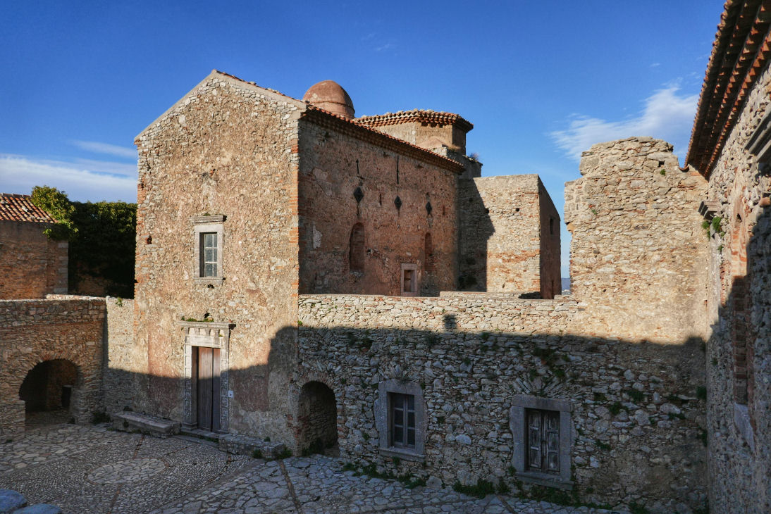 Caronia Castle is above, the Abbey of San Filippo di Fragalà is below.