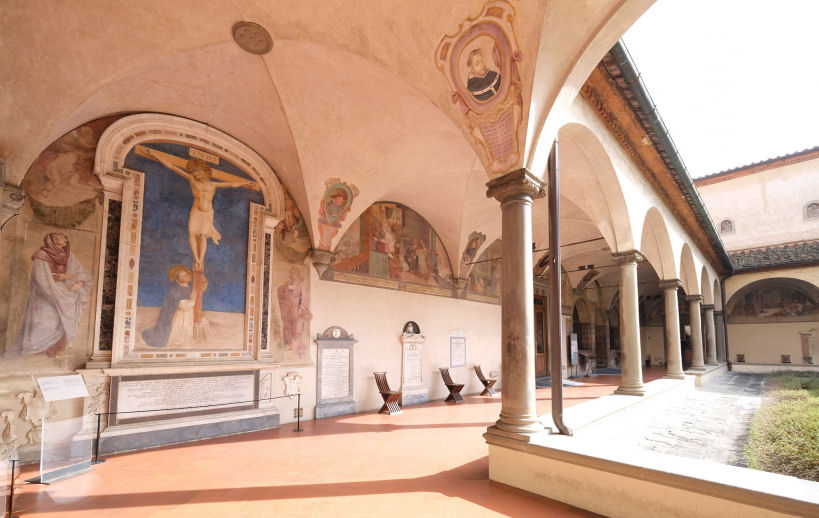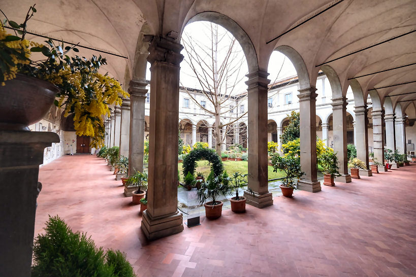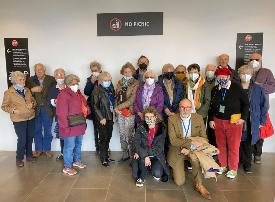 hope that it will soon be of historical interest! Another draw to this trip, run by Ciceroni, is that David and Jenny, old friends from Travel Editions trips, are on it, and Paula and Geoff Nuttall - esteemed art-historians who have Florence (and Flanders) in their blood - are taking it. In Florence there’s a conference of mayors and bishops all week, with the pope visiting and taking a service on the Sunday, so Santa Croce is shut for the duration of our trip. The Brancacci chapel is currently full of scaffolding, but the publicised treat of being allowed to climb up it is not available for us as numbers each day are limited and don't allow for groups. There are some closed parts and days affecting Santa Maria Novella and the Palazzo Vecchio too, but fingers-crossed they're not looking like messing up our tour itinerary, which is now on its forth version. Wednesday 23 February My train to the airport was so empty I took the risk of taking my mask off. We had been advised to get to check-in no later than 11.30, two hours before our flight. Only the north terminal is being used currently, and it was there whilst self-bag-dropping that I met up with David and Jenny, and after the usual security rigmarole we made for an early Pret lunch and catch up, where we were reunited with Paula and Geoff. At boarding we had to remove our masks when presenting our passports, but all was normal otherwise. On the airplane we had to wear a mask, and, following Italian regulations, weren't allowed to put loose clothing into the overhead lockers. Odd. Arrival at Pisa and passport checking went very swift and smooth. Only passports were checked, and stamped. As someone who has long craved stamps in his passport this almost shows that Brexit wasn't a total tragedy. At no point had anyone asked to see our Negative COVID Test certificate, making that whole stressful process a waste of time. We were quickly coached to the Hotel degli Orafi where our NHS Covid jab forms were checked, eventually, being known as a Green Pass in Italy. There was just time to settle in before our first group dinner at the quite nearby Ristorante Parione. A sociably and gastronomically good time was had with a mozza/tom salad starter, and my melanzane main course coming topped with smoked cheese. I lost track a bit, especially when my delayed main course wait (they apologised and said they'd dropped it on the floor) was filled in with pear and pecorino wedges with honey and a glass of vin santo. Also grossed out by the meat-eaters main course being wild boar and/or veal cheeks, and mash. ![]() Thursday 24 February A decent night's sleep. I didn't register the Palazzo Vecchio's nearby bells after 11. 00 or before 7.00. Superior breakfast, with good juice and cereal choice, OK coffee and wholemeal croissants, the latter only spoilt by being glazed. A walk into the (weirdly empty, see photo right) Piazza della Signoria and up to the Duomo and Baptistery provided a sterling introduction to Florence with Paula's savvy narration and the distinct lack of tourist hordes. Coffee opposite San Marco (with a strudel pastry) was followed by a visit to the Fra Angelico-fest that is the San Marco cloister (see photo right), cells and cenacolo. Lunch was minestrone soup and bruschetti in Piazza dell'Unita with new mate Alysia. In the afternoon we did the Opera del Duomo museum - 3 doors, 2 cantoria, 3 pietàs, etc. For dinner I took Alysia, David and Jenny to old fave Grotta di Leo, which was oddly heaving. I say oddly only because Florence is so not heaving at the moment. Pizzas were the order, as was good conversation. On the way back to the hotel my first gelato in SUCH a long time was a limone and cassata two-scoop coppa from Venchi and it was grand. Friday 25 February To the Palazzo Medici-Riccardi this morning, in light rain. The need to divide into small groups, the Chapel being very small, made for much messing about, but the job got done and the art was appreciated. A special exhibition devoted to Benozzo Gozzoli was appreciated too. Coffee was taken in the meat market, away from the meat. And orange and almond cantucci were found on sale nearby and appreciated to go with our beverages. Our San Lorenzo visit concentrated on the apse end, including the old sacristy, which had a film crew in filming the Donatello stuff for the big show in town. A new shop, which provides access to a newly-open cloister, proved underwhelming on both counts. Lunch was taken in Mama's Bakery and for me was a bagel with cream cheese and banana (they didn't have cucumber) and a dusting of cinnamon, the latter suggested by Alysia, which proved good advice. In the afternoon Santo Spirito, which continued the day's Brunelleschian theme, had a funeral on, a large one, for a youngish man who must have been a local pillar judging by the crowds. But we were allowed in if we kept quietly to the apse end, where the best altarpieces are. The Michelangelo crucifix involved an open door giving access to a new (and lovely - see photo right) cloister on me, with a frescoed cenacolo off of it. Santa Trinita followed, concentrating on the special Salimbeni and Sassetti chapels, of course, but included a visit to the sacristy, which the attendant rounded off with a party-piece revelation of the cupboards, containing copes and a staircase (see photo below). In the evening we merry band from last night went to Mangiafoco Osteria Tartuferia, a very nearby restaurant where truffles were the thing, but not for us. I had a pecorino, pear and walnut bruschetti followed by cheese and tomato ravioli. All was deemed delicious. The rain falling lightly on the way back to the hotel was enough to dampen gelato desire, but there is no more rain forecast for the rest of our stay. ![]() Saturday 26 February I decided to bale on this morning's visits to the Bargello & Orsanmichele as, for me, they paled beside the prospect of some website-necessary church visits. A number of façades were maximis