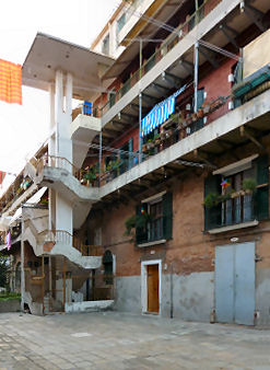 My last day, and so a day of mopping up some places that I'd missed. I headed for the Rialto, in the hopeless expectation that San Bartolomeo might be open as advertised. I killed some time waiting for the time when it was set to (not) open by boat-watching from the Rialto - watching the delivery men unloading ice cream and the postmen loading stacks of mail. Finding San Bart still closed I went into San Salvador as I'd always previously gone in 10 minutes before closing time. It's a monumental and plain church, as well as being historically important, with the words 'big' and 'dark' applying to. The late Titian Annunciation is becoming a favourite of mine. And in case you're wondering why Mary is lifting up her scarf and showing the angel her ear it's because that was evidently the organ through which God...well, you know. There's another Titian over the high altar but the truly bad restoration job done on this one means that you'd probably never guess. The remains of St Theodore, Venice's original patron saint, are in the chapel to the right of the apse. And the right hand wall of the apse has a large painting of something nasty happening to a naked chap. (The labelling is a bit patchy in this church.) Many tombs and altars, including an altar to the luganegheri (sausage makers) with statues by Vittoria of Saint Sebastian (with a metal arrow embedded in the stone) and Saint Roch (with a very discreet sore on his leg). The organ doors and the frescoes outside over the side-entrance (under the organ) are by Francesco Vecellio, Titian's brother. Heading towards Cannaregio I came across San Lio and realised that I'd never been inside. It's a surprisingly plush and interesting little church, aisleless with four unsimple side altars, one with a Titian that's not in the best of states. The chapel to the right of the apse is the work of the Lombardos - the overall design is by Pietro and the pieta panel by Tullio. It's also said that the chapel contains the tomb of Canaletto. The ceiling fresco of the Apotheosis of St Leo in Glory and the Exhaltation of the Cross is by Giandomenico Tiepolo. A modestly impressive church, then, quietly hiding some big names and well worth a visit, I say. The attendant was chummy and very helpful too, and so I even asked respectfully if I could take photos and when he said no I accepted it. Even though he left with me and went into a local café getting money out of his pocket...but no I was good and didn't take advantage. I was slowly heading for the Scuola Grande della Misericordia, a tempting great brick pile that has been closed for many years ![]() Another Biennale exhibit nearby provided some somewhat ordinary views out over roofs, but yet another one, put on by Warwick University, over the canal from the church of Santa Maria della Misericordia (near the Scuola Grande) was disappointingly all closed up, and so the rumoured spiffy views over towards the church were not to be seen, or photo ![]() |