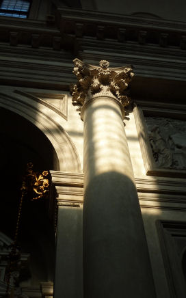 Regular readers will know that my last year's trip was not my favourite, and that a combination of dingy weather and a poor hotel on that occasion did bad things to my mood and my Venice-love. Well, today saw my Venice mojo return mightily. Breakfast was a good start, and again the key word is 'spacious'. It's so pleasant to breakfast in a room the size of a refectory rather than one the size of a bedroom. Further brownie points were earned by there being croissants available without the jam already inserted. A luxury most rare in Venetian hotels, I've found, and such a treat for us jam lovers who like to make their own choices. There was also five sorts of cereal, juices, yoghurts, fruit salad, fresh fruit, a wide beverage choice, bread rolls and those packets of rusk-y biscuit things. People are strange though, aren't they? I make this sage-like observation because of a trait I've noticed whereby one can park one's self somewhere in an otherwise sparsely-populated breakfast room (or car park) and guarantee that others will then appear and cluster around you, despite the acres of space, and often talk distracting drivel. Funny that. Due to my (for me) early start initiative I was out and tramping the campi before 9.00 and heading off towards darkest Castello. First stop was San Zulian. Inside it's square and aisleless and very dark. The only substantial architectural details are the Corinthian pilasters either side of the chancel, but there's lots of gold and works by Palma il Giovane including, I have to admit, quite a nice Assumption. Appreciation of the painted ceiling is much improved by putting some coins in the light but this is verily a light of most stingy duration. I had to pop into San Zaccaria, of course, due to my strong Bellini-love. After lingering, and taking some photos too, I headed for San Giorgio dei Greci, a first visit for me, and a real treat. Firstly the courtyard around the church is rather lovely, with olive trees and two well heads. Inside the church consists of an aisleless nave with a frescoed central dome (see left). The narthex has a ladies' gallery on top of it and there are those dark wooden pew-carrel things (I'll look up the proper word later, honest) all around the plain and grubby walls. But the thing is the icon screen - a gold overload all covered in icon-style paintings that have to be contemplated from a fair distance away, it has to be said. It was very enjoyable to sit in here in peace, as the fact that this church is little off the beaten, and accessed through a gate, seemed to keep visitor numbers low, so I had the place to myself most of the time. Venice does seem much less crowded to me this trip. There are lots of people, of course, but I've not yet felt oppressed, even on the main drags from the Rialto and San Marco. I can best illustrate it by saying that I was taking a photo along a canal today and I didn't have to wait long at all for the bridge in the shot to become depopulated. ![]() I then headed off towards the Via Garibaldi, where I got some brief photographic time in San Franceso di Paola before it closed. On to San Isepo for some scaffolding-free exterior shots, and into the public gardens to find and photograph the arch that's all that's left of the demolished church of Sant'Antonio di Castello. A warm walk back, detouring via San Zanipolo for a slice of pizza topped with (very thin) courgette slices. Find a quietish bench to eat in the campo, only to be soon joined by a mother and two noisy kids. Sigh. Sooth the breast with a coconut and lemon gelato. Back to room (picking up a fornarina on the way) to type this, and feel most happy. An early evening mop-up of a few random church interiors was followed by the walk to the cyberspot to upload the above and eat something nearby. Then a detour via Grom for a coppa of pear and coconut which was just gorgeous. I also picked up a bar of Lindt dark chocolate - poire intense with almonds. Life is good, and pear flavoured. And I spread the goodness by giving three lots of directions tonight. I must've been looking particularly helpful. |