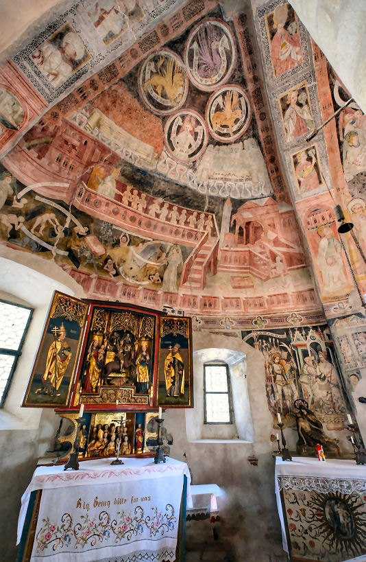 chapel decorated with frescoes, where the altarpiece missing its panels