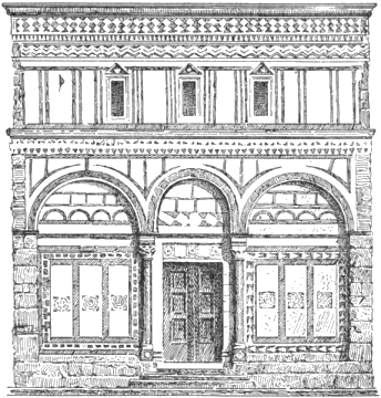 with ionic capitals and bases recycled from a roman building.