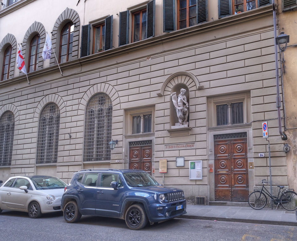 ![]() ![]() History Opened for worship in 1881 in a 15th century palazzo at number 18 (said to have Medici connections and to have once been an early home of Machiavelli's family) to attract Anglo-Catholic tourists. This more high-church congregation split from the Anglicans at Holy Trinity in 1877. The interior was altered by its founder Reverend Charles Tooth, from the Tooth Brothers’ brewery family in Burton upon Trent, whose brother Arthur was also a priest and was one of the founders of the high-church movement in England. This work was done with the help of the English Gothic architect George Frederick Bodley, turning the ground floor into a church with a nave, and two aisles, transept and chancel, about 90 feet long and seating 400. The upper floors were used to house the chaplain and parish assistants. The church soon attracted English-speaking expats. John Roddam Spencer Stanhope's stencilled decoration is more than a bit Pre-Raphaelite, unsurprisingly, given Stanhope's close associations with Edward Burne-Jones and George Frederic Watts. This decoration suffered serious damage during the 1966 flood. The altar reredos painting is thought to be by C. Jeffreys, but Spencer Stanhope probably designed the structural elements. The premises were extended with the purchase of 16 Via Maggio in 1906, allowing the building of a lady chapel (which now houses the organ), a sacristy, a bigger vestibule and extra accommodation upstairs. During WWII St. Mark’s was shut down, but left in the care of Father Frederick Bailey, the chaplain, who was arrested and interned for several months in 1944. On his release, he was allowed to return to England. With the arrival of the Allied troops, the church was reopened and services were held by a military chaplain. Father Bailey featured in Alex Preston’s novel In Love and War. The church currently hosts opera and choral performances. The marble statue in the niche by the main door is The Apotheosis of Saint Mark (2007–8) by the American sculptor Jason Arkles. Photo by Gregory Dowling |