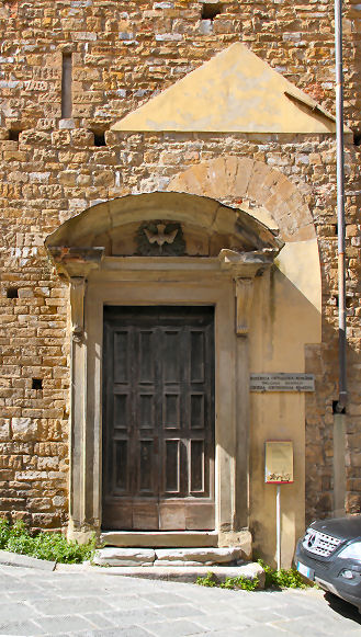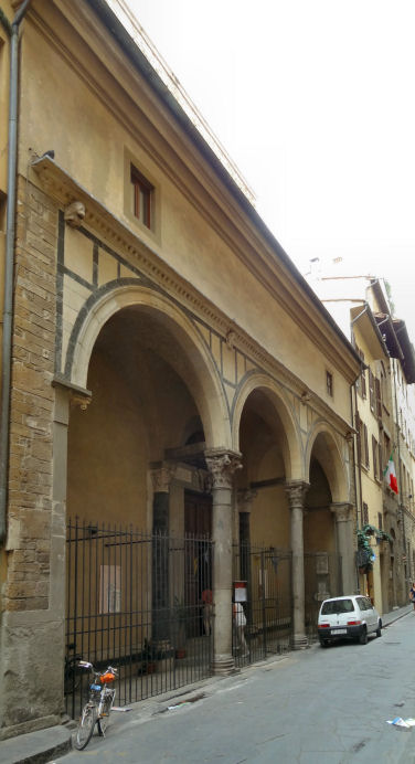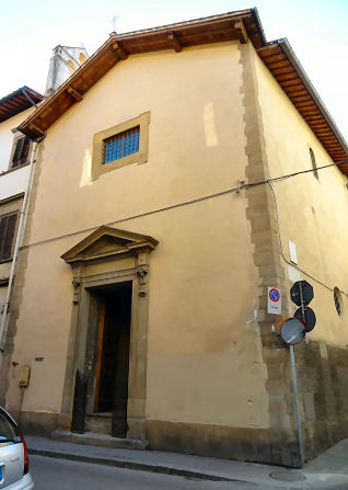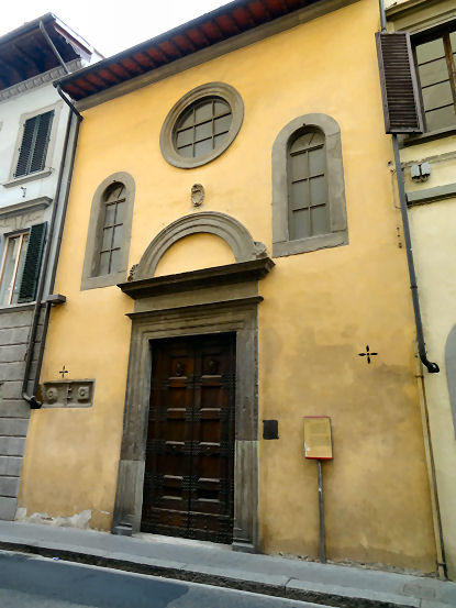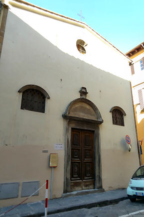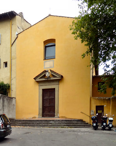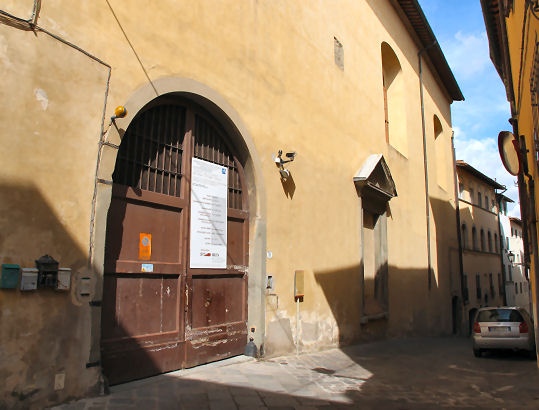 ![]() History In April 1441 one Luca di Taddeo was visiting female relatives at the Augustinian convent of Santa Monaca (local dialect for Saint Monica) in the town of San Miniato. Finding the premises unsuitable he suggested to the Abbess, Suor Jacopa di Gomberoni da Milano, that she move her community to more suitable lodgings, offering his help. With the added incentive of locally-raging wars she came to live with Luca in December 1441. A convent was established in May 1442, with funds donated by Ubertino de' Bardi, whose wife Caterina, barren for many years, had conceived after beseeching Abbess Jacopa to pray on her behalf. The Abbess and her nuns moved in in January 1443. In July 1444 some nuns from Pistoia arrived to bolster numbers. Work on the church, replacing an earlier chapel began in May 1447, directed and financed by Jacopo di Leonardo de’ Bardi, the cousin and heir of Ubertino, the previous donor. Patronage also came from the Capponi family whose coat of arms appears on the façade above the 15th century doorway. Work was halted when nearby Carmelite friars objected to the new church being too close to their monastery. On 3rd August 1447, in the middle of the night, the friars actually came and demolished the stone door frame of the church. This dispute dragged on until February 1449, after Jacopo de’ Bardi obtained a papal bull from Nicholas V on 1 August 1448, giving permission to complete construction of the church. Extensive rebuilding followed in the 16th century with a new high altar with a Deposition by Giovanni Maria Butteri (1583) and a nun's choir. The ceiling was frescoed around 1700 with The Gloria di San Martino by Cosimo Ulivelli. The complex was suppressed in 1808 and has been put to various uses since. Opening times Currently the church is used for exhibitions and concerts, and the convent as hostel accommodation. Bibliography Many thanks to Laura Llewellyn for a read of her PhD thesis Art, Community and Religious Women in the Oltrarno, Florence which added much the history of the convent above. |