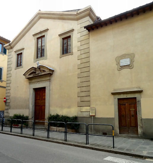 ![]() History Founded in 1531, on the site of the earlier Hospital of Santa Lucia belonging to the confraternity of the Bigallo (1428-1530), by the Benedictine nuns from the monastery of Sant'Anna in Verzaia, whose convent had been destroyed during the siege of 1529. In 1538 it passed to the Franciscan Tertiaries. With suppression in 1748 the building was used as a hospice for mendicants and various other uses followed, involving substantial alterations. After 1845 the monastery became a tobacco factory and then a barracks. It then became the sculpture studio of Lorenzo Bartolini who, after his death, passed the building on to his protégé Pasquale Romanelli who worked here from 1851 to 1887. There is a plaque to his memory near the main entrance. The building remains in the Romanelli family and is today used as a sculpture showroom. Over the door there is a marble bas-relief by one of the Cennini of The Archangel Raphael with Tobias. |