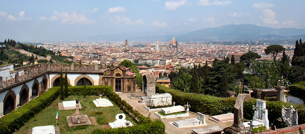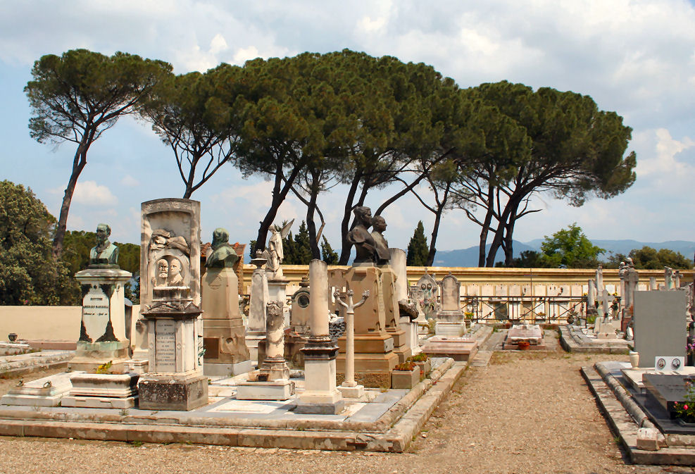 The Porte Sante Cemetery was planned from 1837 but work began seriously only after the cholera epidemic of 1854. Santa Croce had become overcrowded and it being the period when Florence was Italy's capital added to the urgency. The original architect was Niccolò Matas, who was also responsible for the façade of Santa Croce. Later, in 1864, Mariano Falcini's plans involved expansion of the cemetery into the area beyond the 16th-century fortress adjoining the church, the walls of which had been designed by Michelangelo and incorporated in Matas's plan. These plans were not implemented. The monumental entrance was built, in the 1920s, but the planned Pantheon never was, so the graves of the famous are dotted around. Amongst the cemetery's more famous burials are Carlo Collodi, creator of Pinocchio, Franco Zeffirelli, the Florentine film director, and the author Vasco Pratolini. The site is quite small, and so are the plots, so there is not much monumental sculpture here and few mausolea. But the cemetery is strong on portrait busts, many by sculptors who were working on Santa Croce at the time, Raffaello Romanelli foremost amongst them.